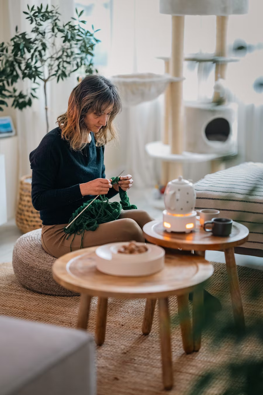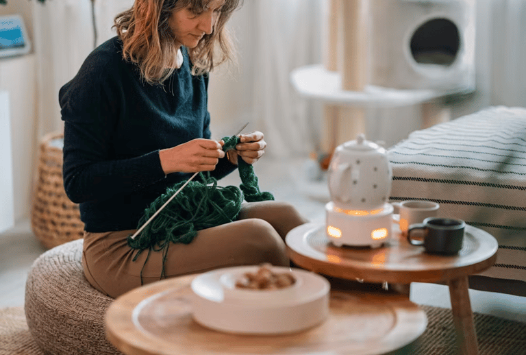 The rhythm of needles and thread — meditation in motion, creating warmth one row at a time.